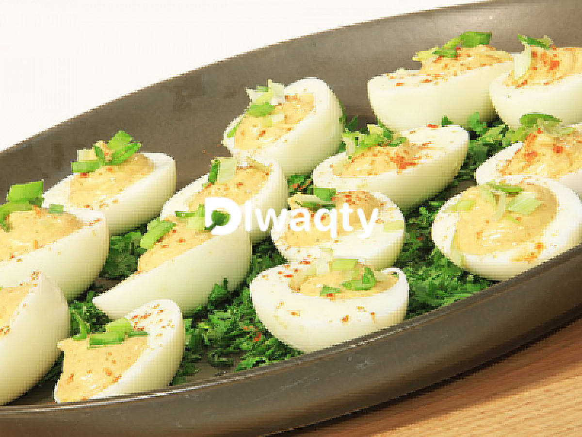 يوضع الخليط في كيس حلواني وتملأ انصاف البيض بالخليط ثم تقدم باردة